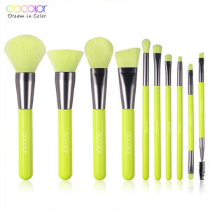 Docolor Neon Green - 10 Pieces Makeup Brush Set
