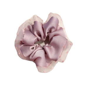Dot Mesh Trim Chiffon Scrunchie in Soft Lilac