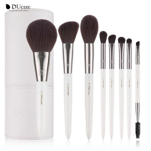 DUcare White Jade Luxe 8 Piece Makeup Brush Set with Brush Cylinder Case