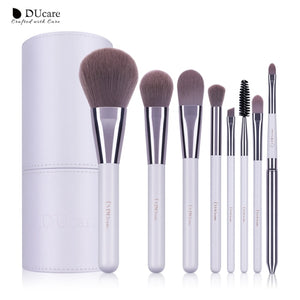 DUcare Luxe 8 Piece Face & Eye Brush Set with Brush Cylinder Case
